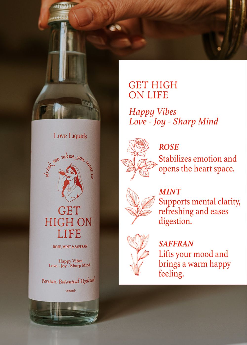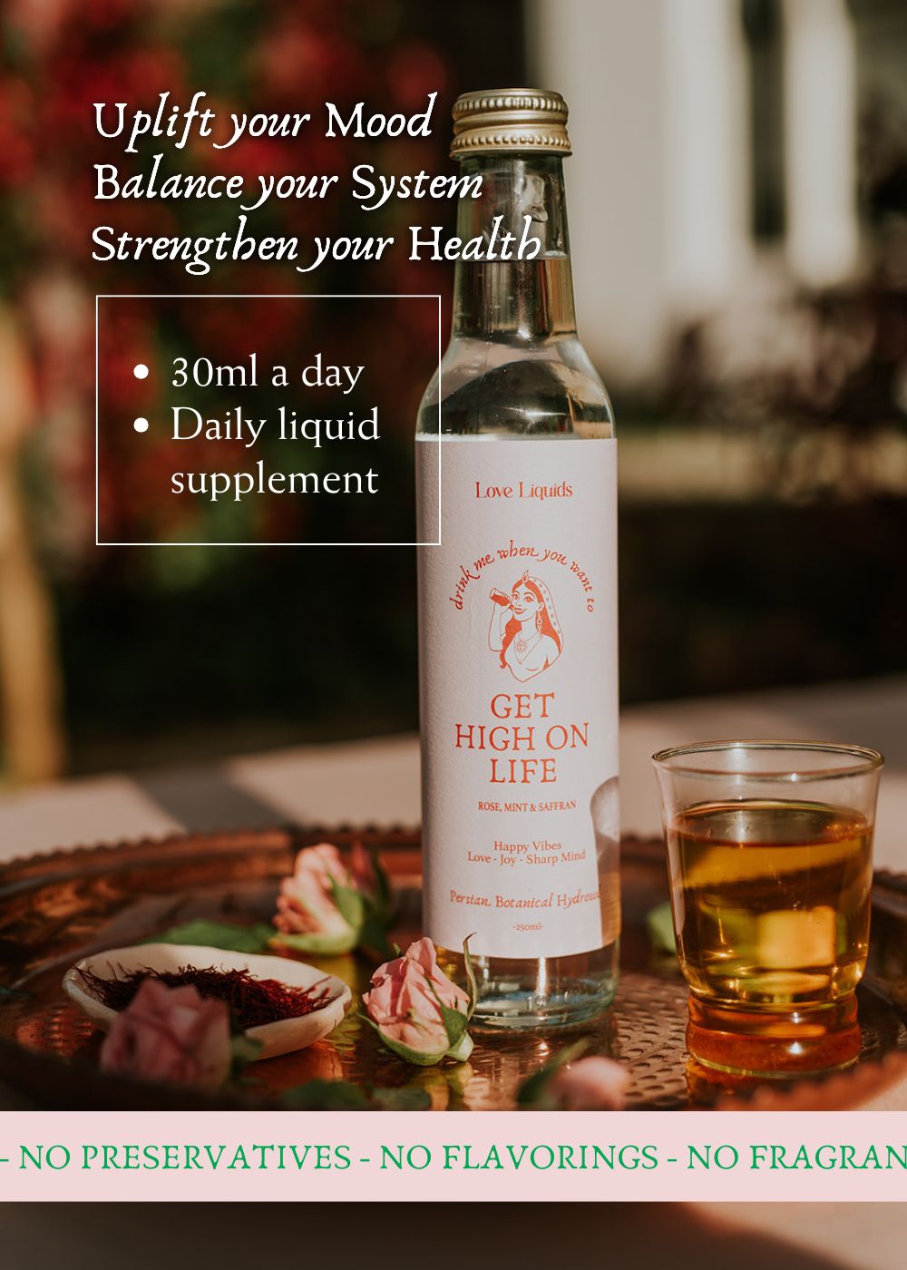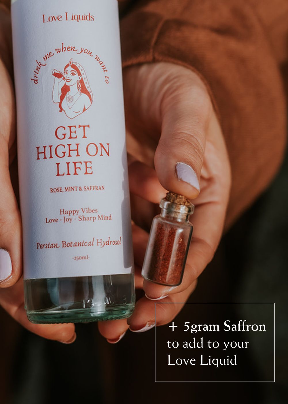 Ingredients:  60% Rose Water (distilled Rosa Damascena petals), 40% Mint water (distilled Mentha leaves) and 5gram Saffron powder (Crocus sativus stigma).